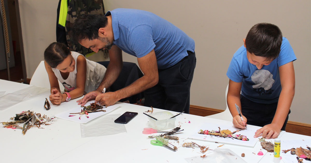 Cet atelier invite les voyants à décrire les œuvres aux malvoyants en utilisant le vocabulaire propre aux sensations relatives au toucher aux odeurs et aux sons.